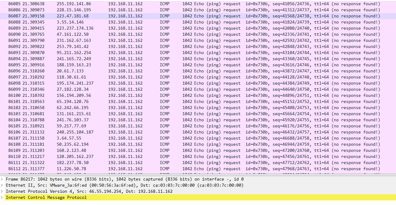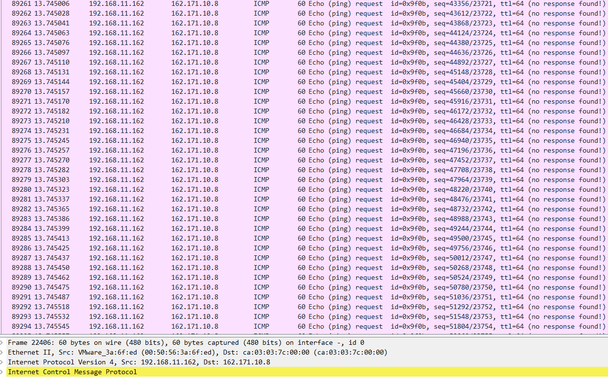 무수히 많은 핑을 보내는것을 확인할 수 있다.