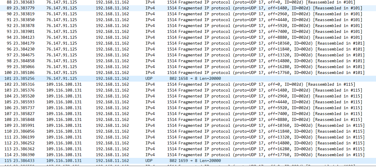 Teardrop Attack(조작된 단편화) 를 확인해보자 본인이 설정한 IP로 보내는걸 확인할 수 있다.