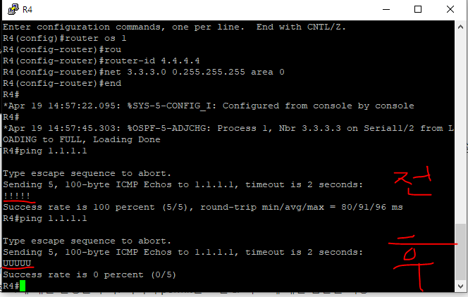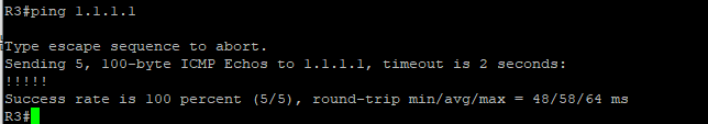 이후 실제로 R4에 3.3.3.2의 IP Address 에서 반대편 내부망인 1.1.1.1에 Ping을 보내보자! UUUUU 가 뜬다면 성공이다.