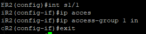 int s1/1 : serial Interface 1/1에 설정으로 들어가서 특정 Interface에 엑세스 제어 목록을 적용,