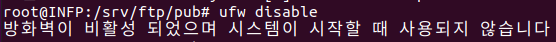 ufw disable 명령어로 방화벽을 비활성화 시킨다.
