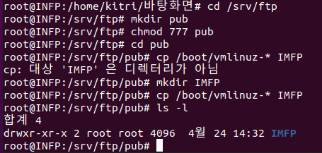 이 디렉터리 아래에 pub 디렉터리를 생성 후 모든 사용자에게 읽기 및 쓰기 권한을 준다.