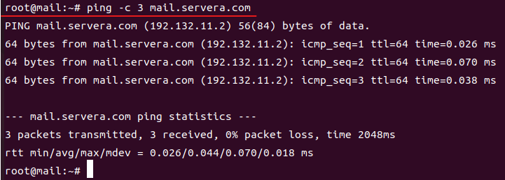 /etc/hosts = 'IP address' mail.servera.com 추가
