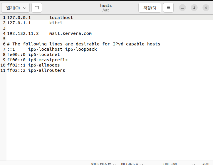 필자는 project를 위해 mail.servera.com 으로 하였다.