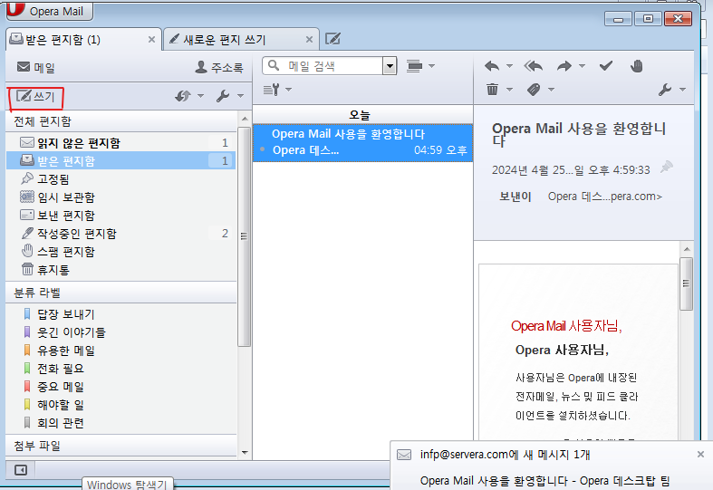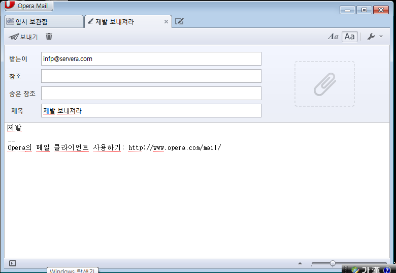 14. 이후 자기한테 메일을 보내보자! (Windows 7 Opera Mail)