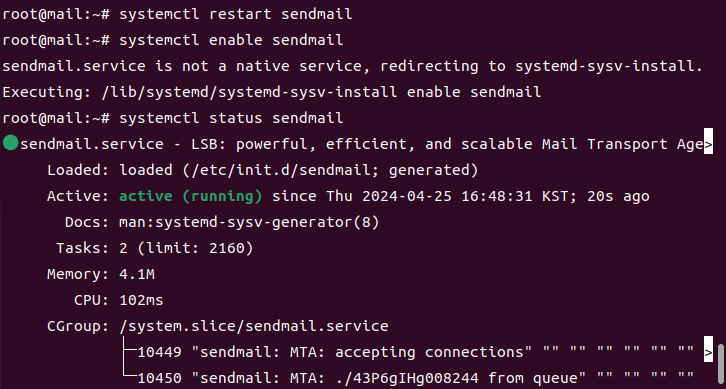 2. apt -y install sendmail로 센드메일 설치 (Mailserver)
