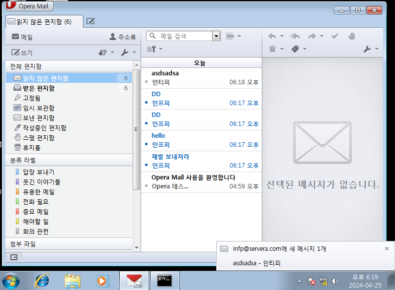 14. 이후 자기한테 메일을 보내보자! (Windows 7 Opera Mail)