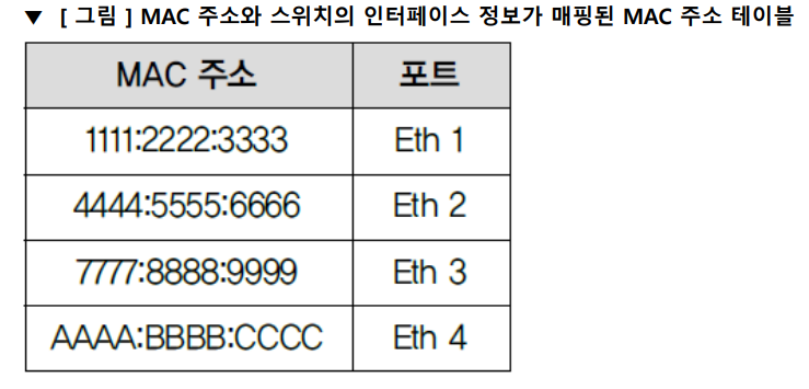 - 스위치는 MAC Address와 포트가 매핑된 MAC Address 테이블이 필요함