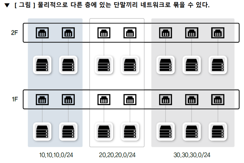 - ex) 같은 층에서 부서별로 네트워크를 분리