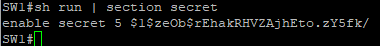 show run | section secret 명령어를 사용하면 확인 가능