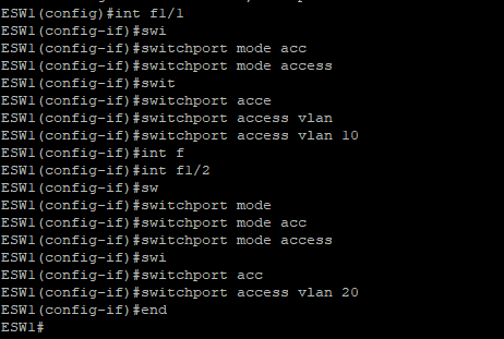 ESW1(config-if) # switchport access vlan 20
