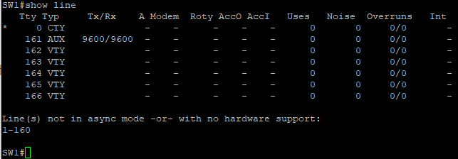 CTY는 콘솔, VTY는 원격접속, * 기호는 현재 사용중인 세션을 의미