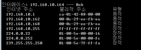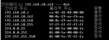 - 네트워크 장비의 ARP 캐시를 수동으로 구성