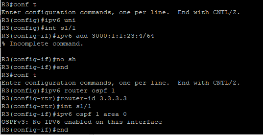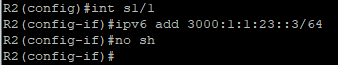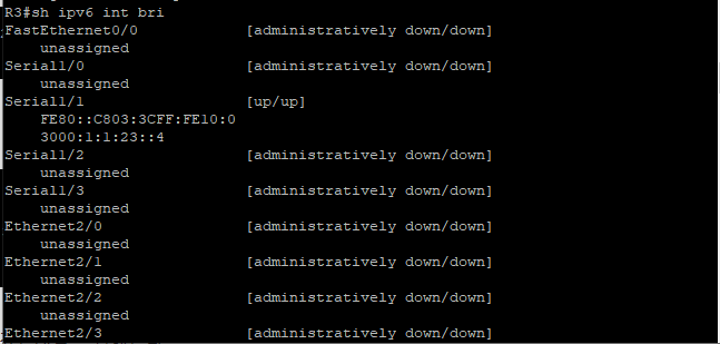 이후 sh ipv6 int bri 명령어를 사용하여 지정한 포트에 IP 값이 제대로 들어갔는지를 확인해본다.