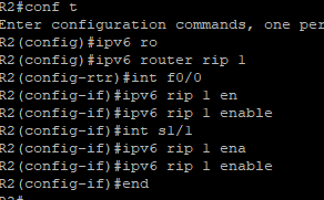 IPv6의 RIP는 IPv4의 방식과는 차이가 있다. 기존의 IPv4에서는 RIP v1과 v2가 존재했었는데 IPv6에서는 그룹핑을 해주어서 관리한다 아래의 사진은 IPv6에 대한 config 값이다.
