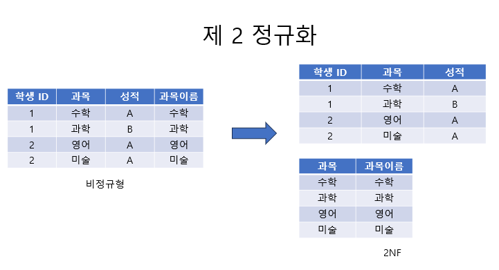 - 기본키가 아닌 모든 속성이 기본 키 전체에 대해 완전 함수 종속성을 가져야 한다는 규칙을 따름