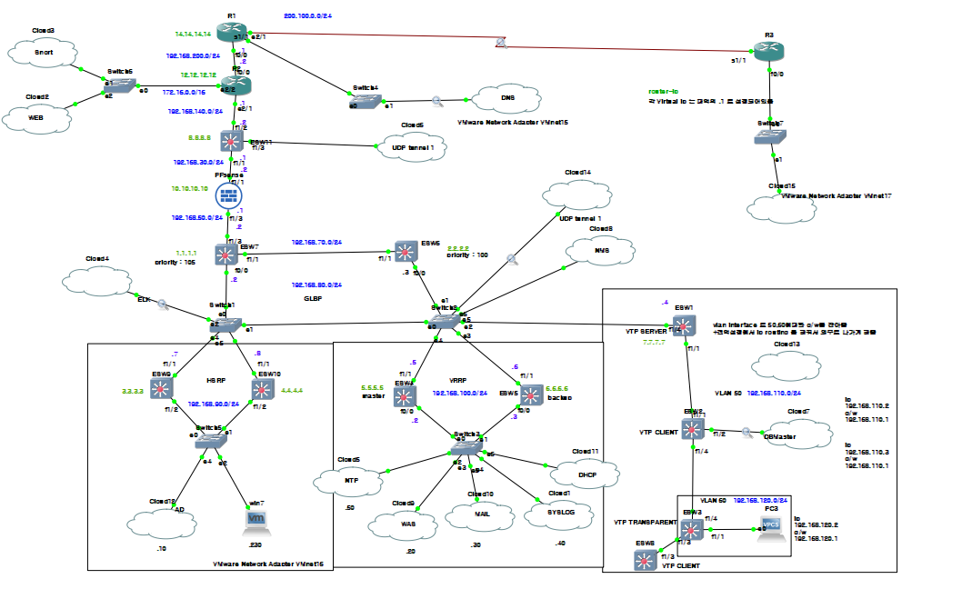GNS3 상 네트워크 구성도는 아래와 같다.