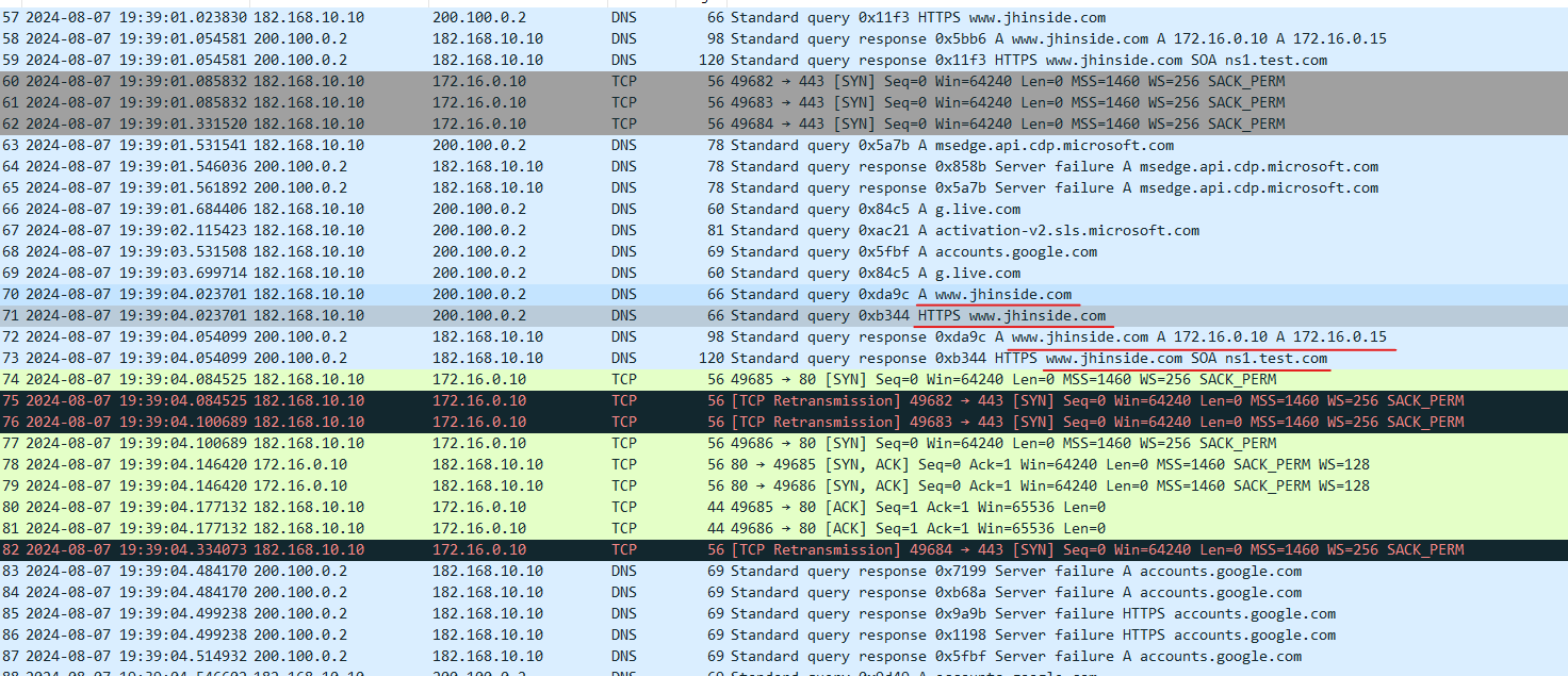 패킷을 살펴보면 DNS 및 HTTP 패킷을 보면 좋다.