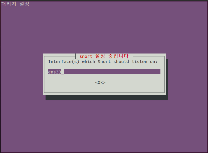이후 설정값이 두 개 정도 더 나오는데, 둘다 ok만 눌러주면된다. 이렇게 하면 snort는 설치가 완료되었다.