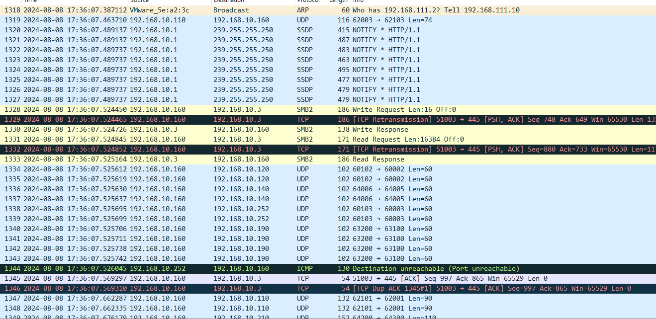 패킷을 보면 UDP 패킷이 뜨는데 위 snort 서버에서도 UDP 패킷 및 TCP 등등이 뜨는걸 볼 수 있다.