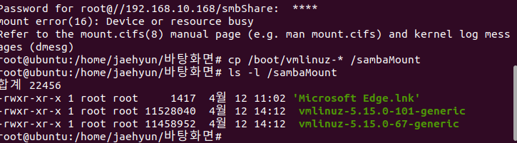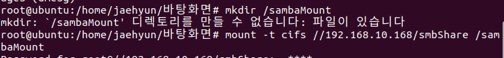 기존에 우분투 사용자인 jaehyun을 sambaGroup에 포함시켰다. (본인은 비밀번호를 0520으로 설정)