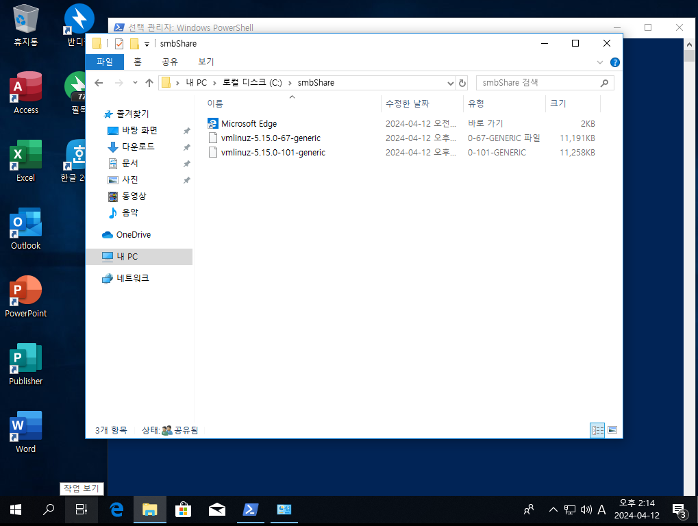 1. C드라이브에 smbShare 라는 폴더를 만든다. (WinClient)