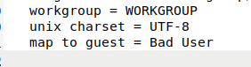 - 29행 아래에 다음 추가: map to guest = Bad User -> 인증 없이 접속 허용