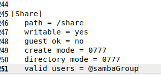 - valid users = @sambaGroup -> sambaGroup 소속 허용자만 허용