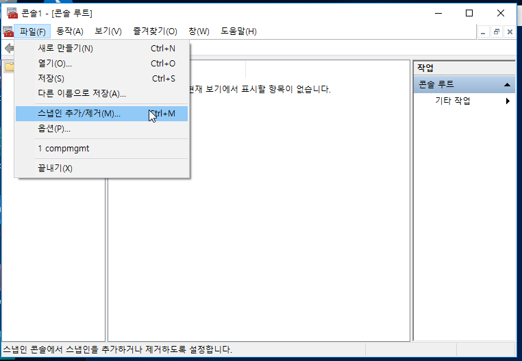 window의 [검색] 기능에서 'mmc'를 검색후 실행